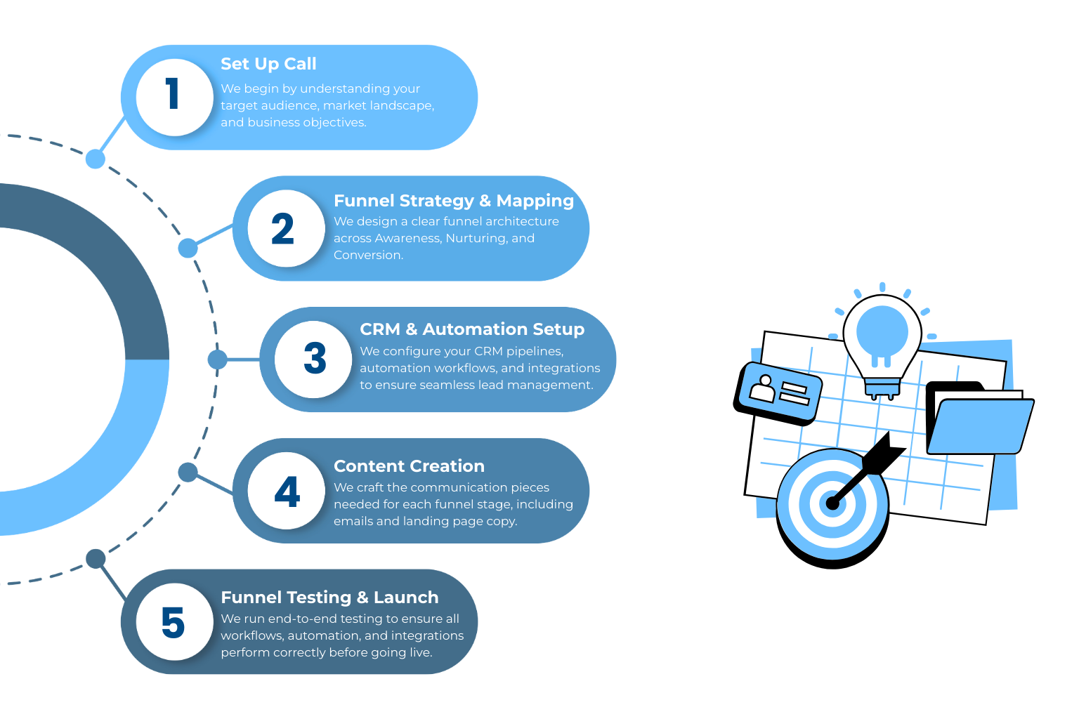 Our goal is not only to help you attract more leads but to build a repeatable, data-driven acquisition system that supports your long-term scalability. We design funnels that integrate awareness, engagement, nurturing, qualification, and conversion, ensuring that your pipeline is predictable and your team is empowered with the right structure.